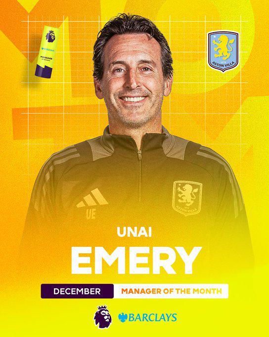 在12月进行的七场英超联赛中,埃梅里带领阿斯顿维拉取得了6胜1负的战绩,维拉也因此高居联赛第三。