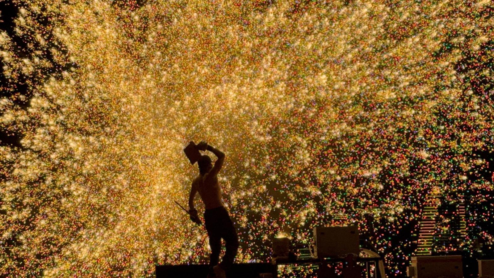 他们的目的地是湖州的太湖演艺城,到了晚上有打铁花和烟花秀,于是他们吃完晚饭才过来。