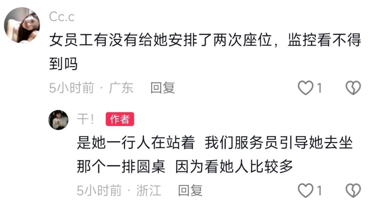 男子还装不知道,让博主把刚才引导换位置的服务员揪出来。