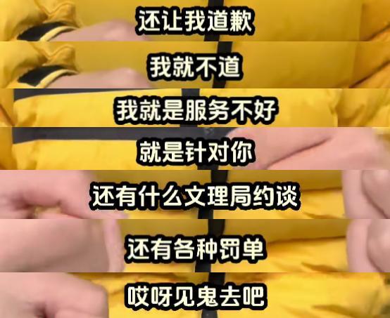 “我就不道歉”、“老子是无敌的,不怕被骂”、“我就是服务不好,就是针对你”、“我家店就是值698,还缺她一桌客人吗”、“文旅局约谈和罚单都见鬼去吧”……