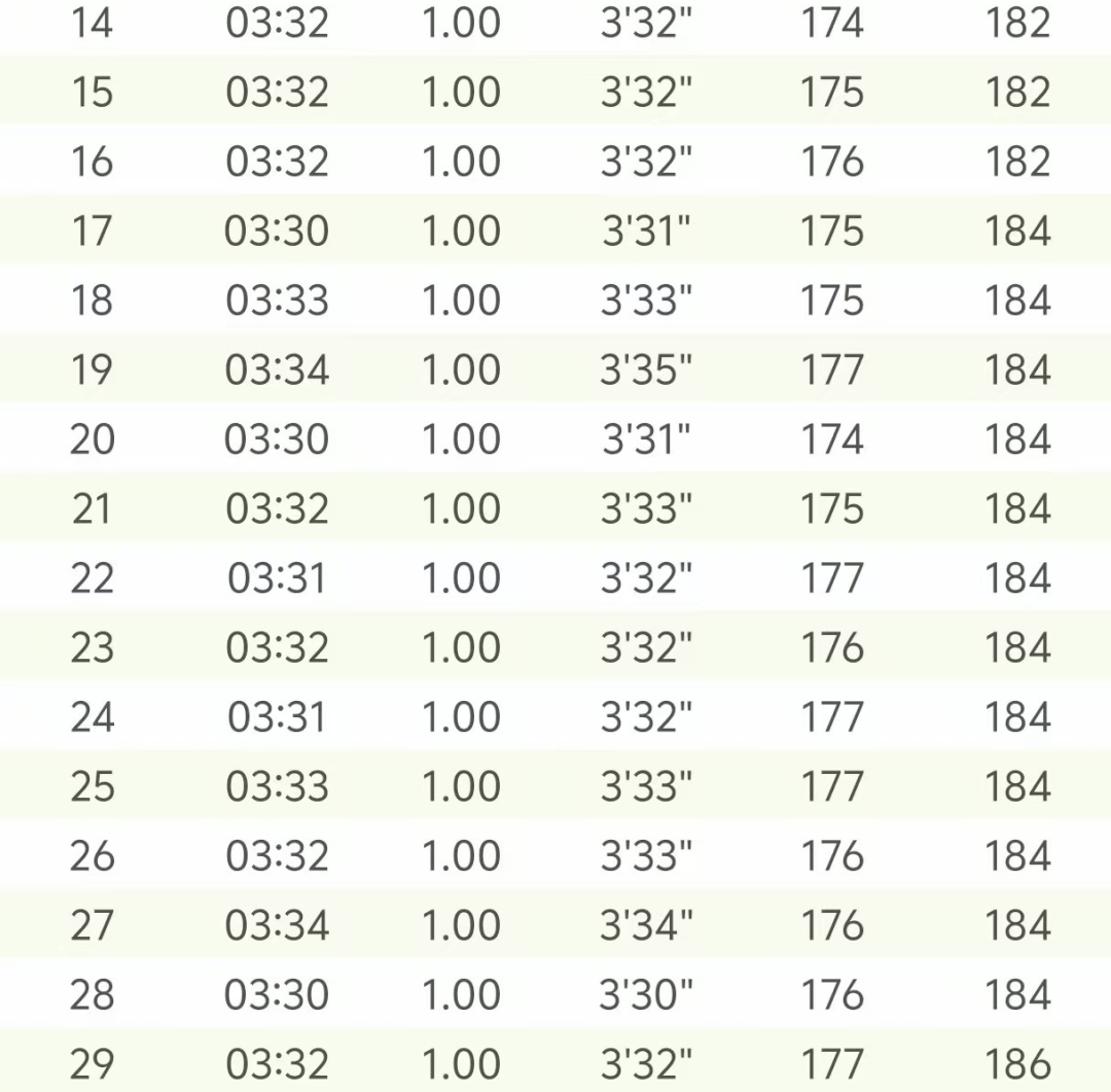 一些训练数据的反馈也让黄菲收获了扎实、系统且无伤的45天冬训。“应该是我最好的一次冬训,也延续每个周期都比上个周期有进步的走势。”黄菲举例说明,“跑间歇可能同样的速度,现在我中间休息的时间更短。比如用 330 的配速跑,以前休息 80 秒,现在我中间只要 70 秒或 75 秒,相当于强度上去了。”