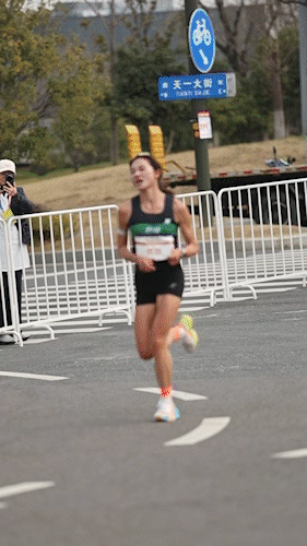 1:15:05是黄菲此次半程的计时。这个用时比她去年9月在西安跑出2:31:02PB时的半程(1:14:52)要慢。看表后,黄菲第一反应是——比西安慢。除了数字带给她有关快和慢的最直接的认知外,她告诉自己:如果后半程不加速,别说PB,连追平西安都没希望。