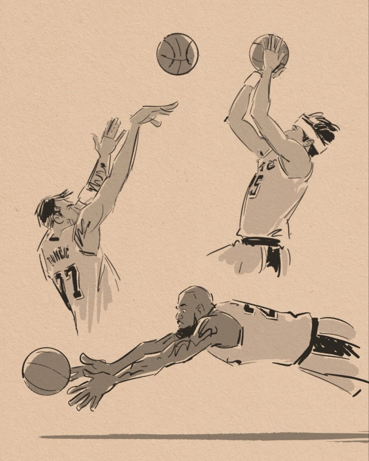 壁纸请收藏!美漫画家晒作品 老詹鱼跃&小里1+2&东契奇绝平全都有
