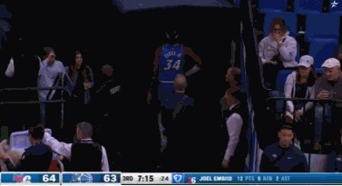 这球够硬!恩比德顶翻小卡特扣篮2+1 后者回更衣室